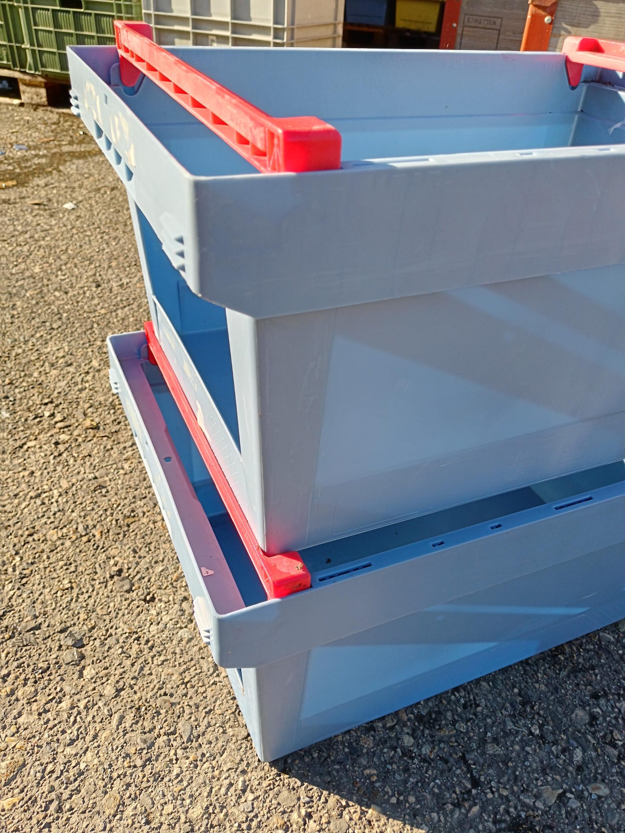 Gebrauchte Kunststoff-Aufbewahrungsboxen in zwei Farben erhältlich: Gelb und Blau. Diese praktischen und robusten Boxen eignen sich hervorragend zum Organisieren, Lagern und Transportieren von Teilen, Werkzeugen oder Waren in Werkstatt, Geschäft oder Lager. Jede Variante ist mit oder ohne Öffnung erhältlich, je nach Bedarf für schnellen Zugriff oder sichere Lagerung.