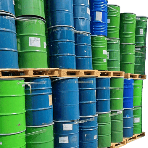 Lagern und transportieren Sie Ihre Flüssigkeiten oder Produkte sicher mit diesen wiederaufbereiteten Metallfässern – robust und zuverlässig.