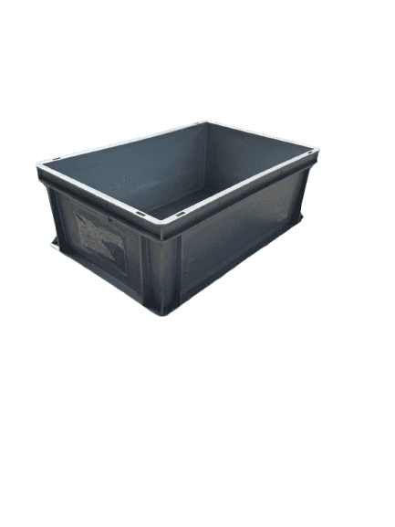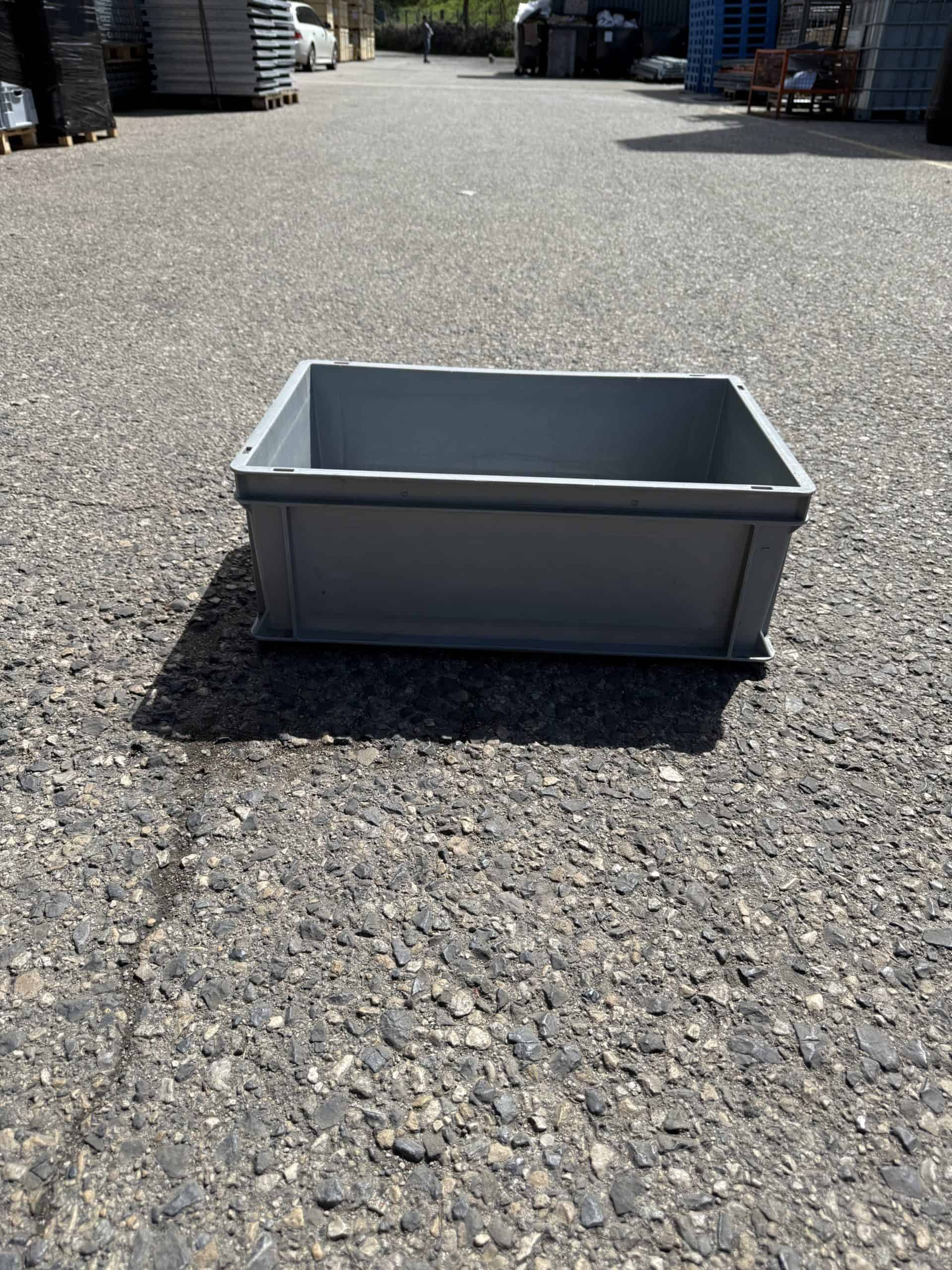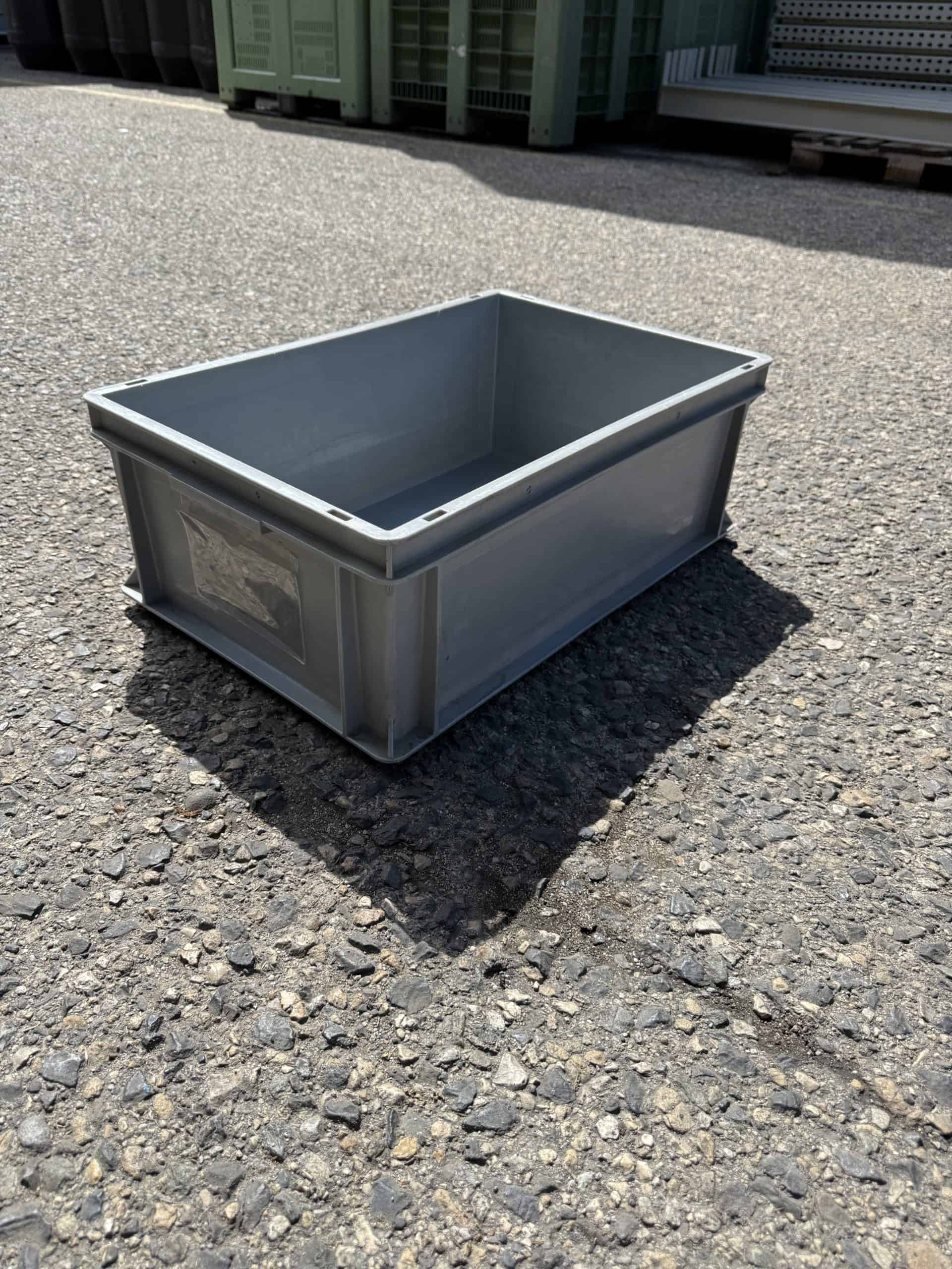 Gebrauchter stapelbarer grauer Kunststoffbehälter – 60 x 40 x 22 cm