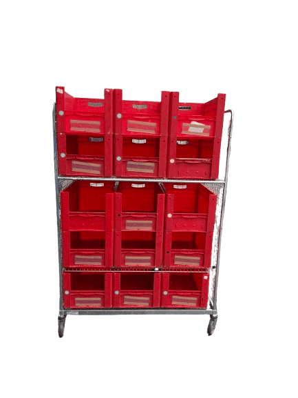 Rollcontainer mit Sichtlagerkasten rot – 130x62x182 cm – gebraucht