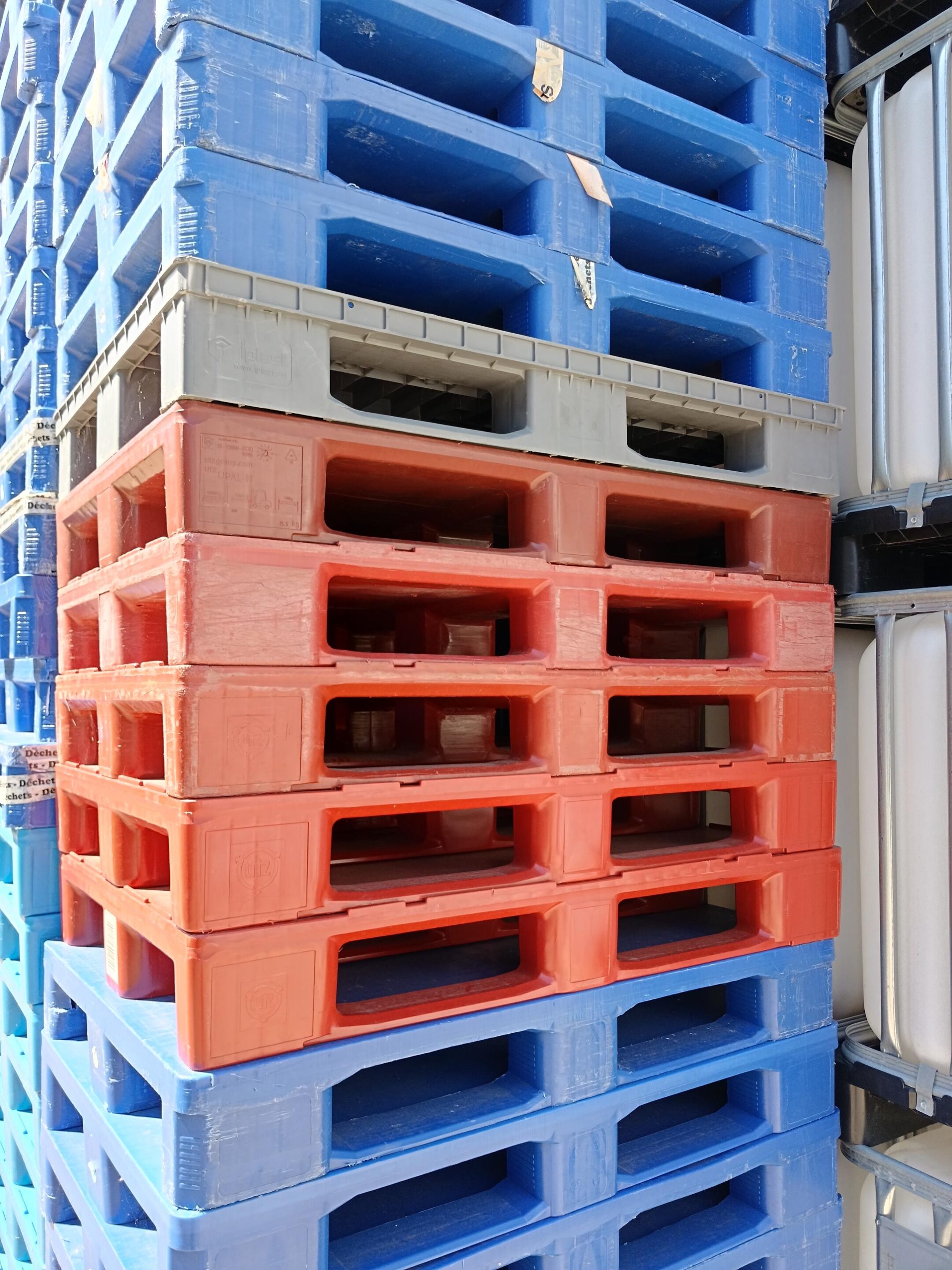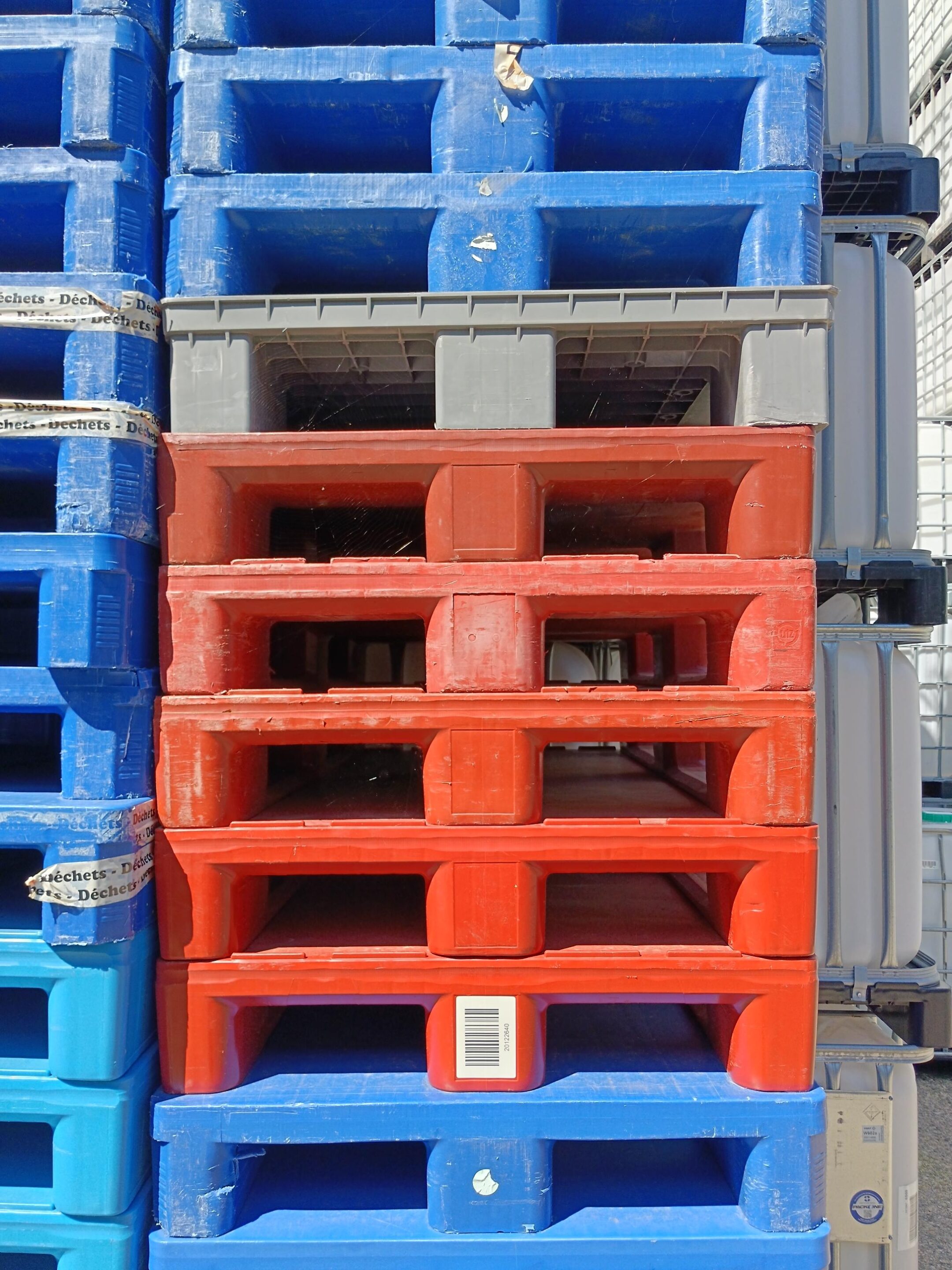 Rote Kunststoffpaletten mit festem Boden 120×80 cm – Gebraucht