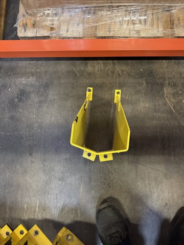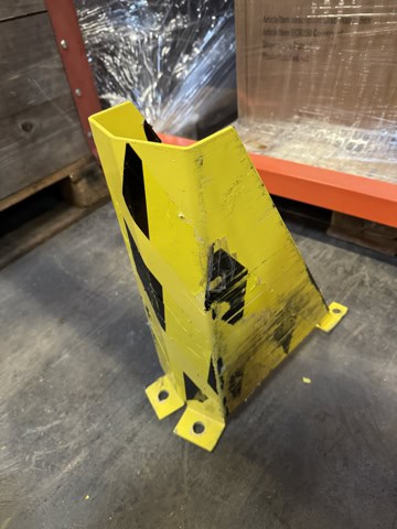 Gebrauchter Regalschutzwinkel oder Anfahrschutz, entwickelt zur Sicherung von Lagerstrukturen und zum Schutz vor Stößen durch Gabelstapler oder Hubwagen. Aus robustem Stahl gefertigt, ist dieses Schutzelement unverzichtbar in Lagern, Logistikbereichen oder Werkstätten, um die Lebensdauer der Regale zu verlängern und die Sicherheit der Mitarbeiter zu gewährleisten.